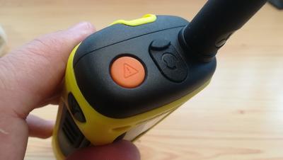 A T92 walkie talkie tetején egy narancs színű vészhívó gomb található, ami egy extra funkciót aktivál.